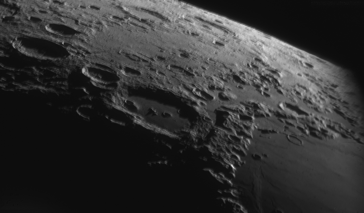 Three day old moon, 9.4% illuminated. Cleomedes and the northern rim of Mare Crisium. The ProPlanet 807nm filter cuts down the incoming light significantly so exposure times and frames rates are slow, and I ended up with very little data to stack. Best 5% of 2000 frames stacked in AutoStakkert and sharpened in WaveSharp. Levels curves and other illumination done in FastStone Image Viewer.