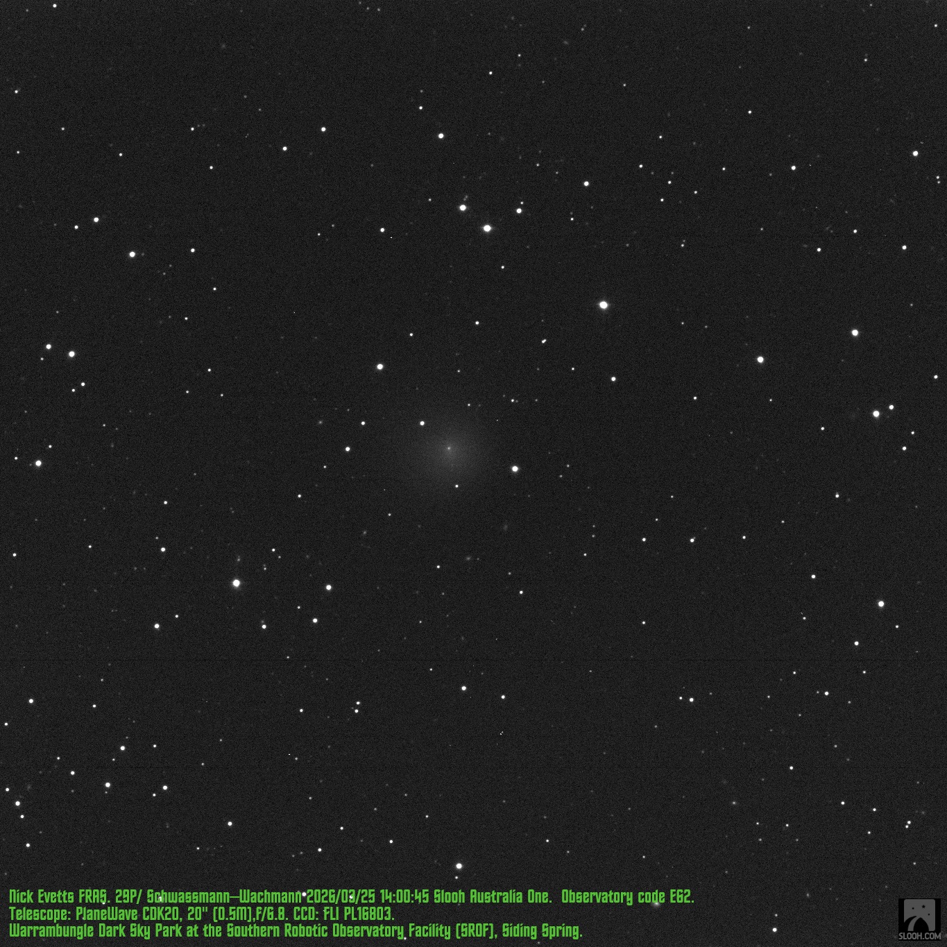 Observation by Nick Evetts: 29P Schwassmann-Wachmann, observed by Ni...
