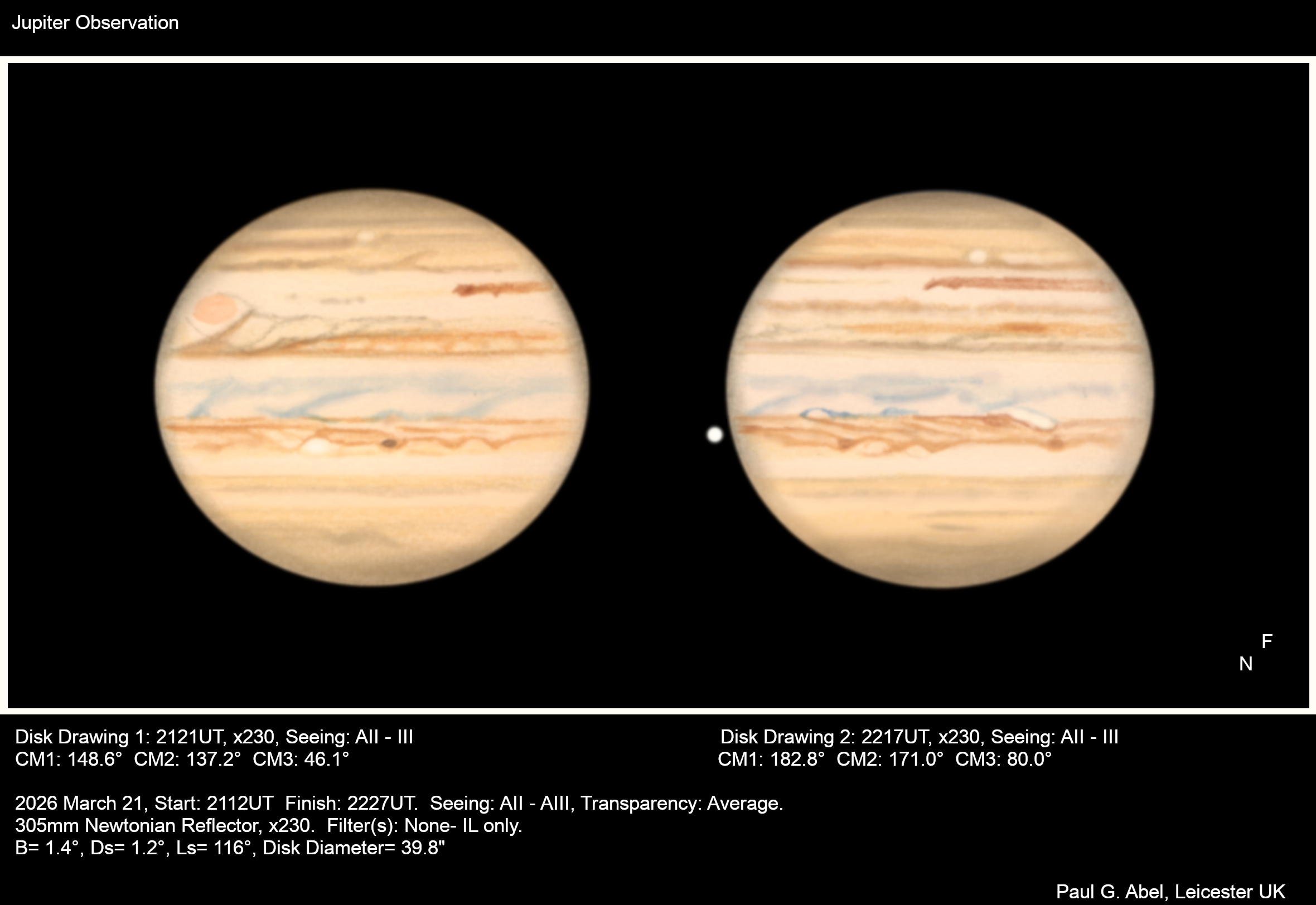 Observation by Paul G. Abel: Jupiter: 21st March.
