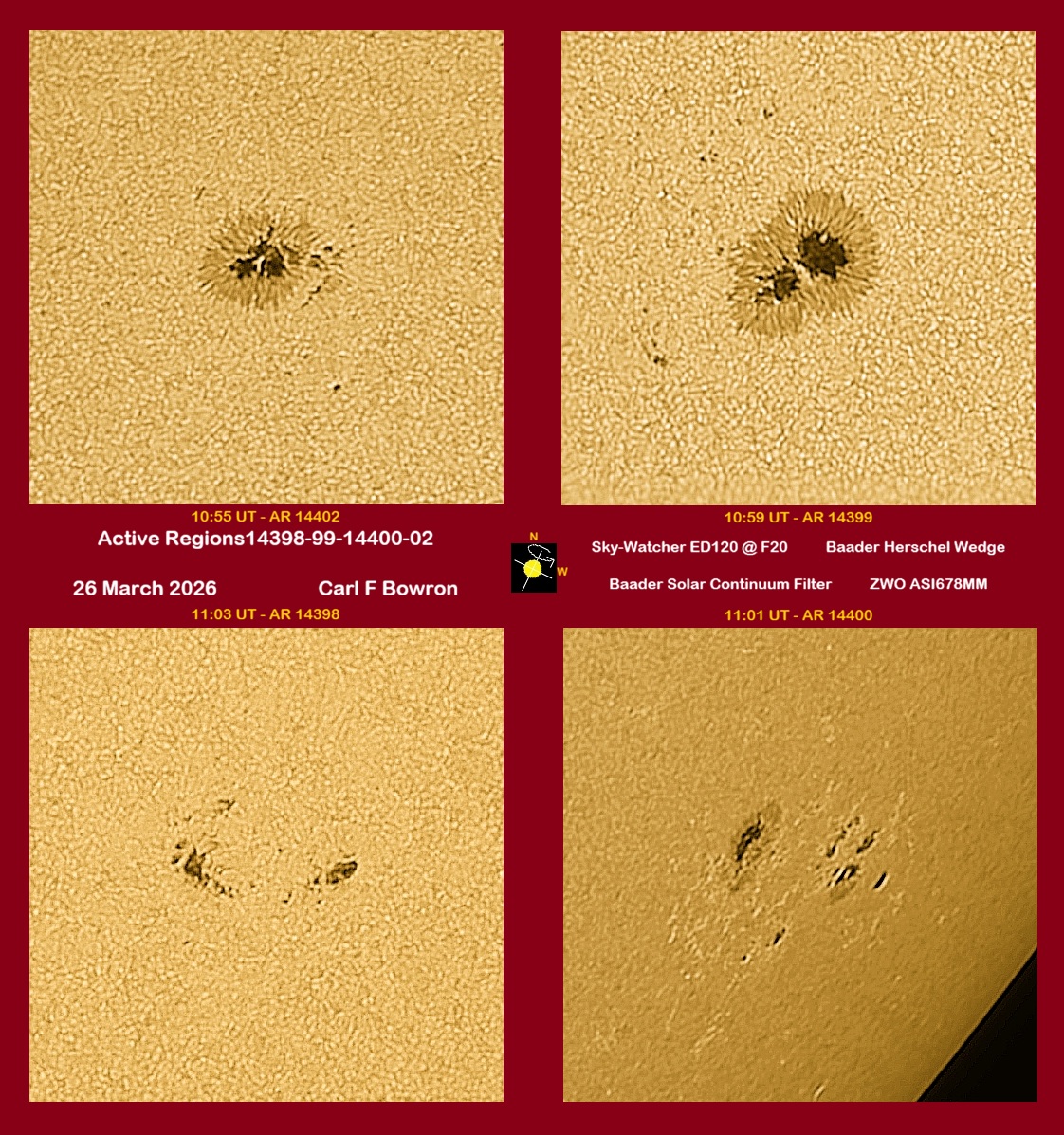 Observation by Carl Bowron: SUN 20260326 1055-1103UT ARS14398-99-144...