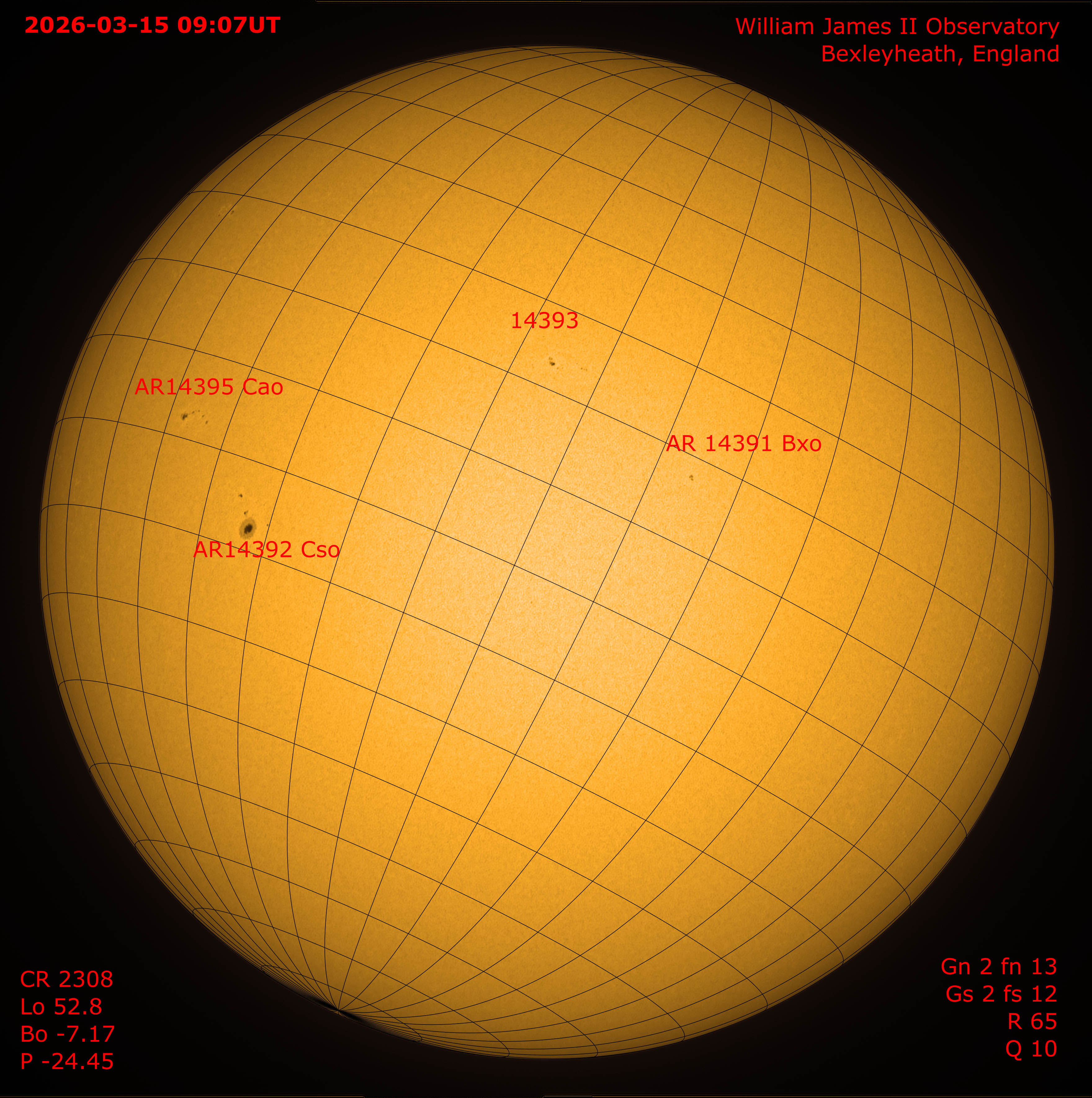 Observation by Simon Dawes: SFD 2026-03-15-0907UTWhiteLightFullDisk