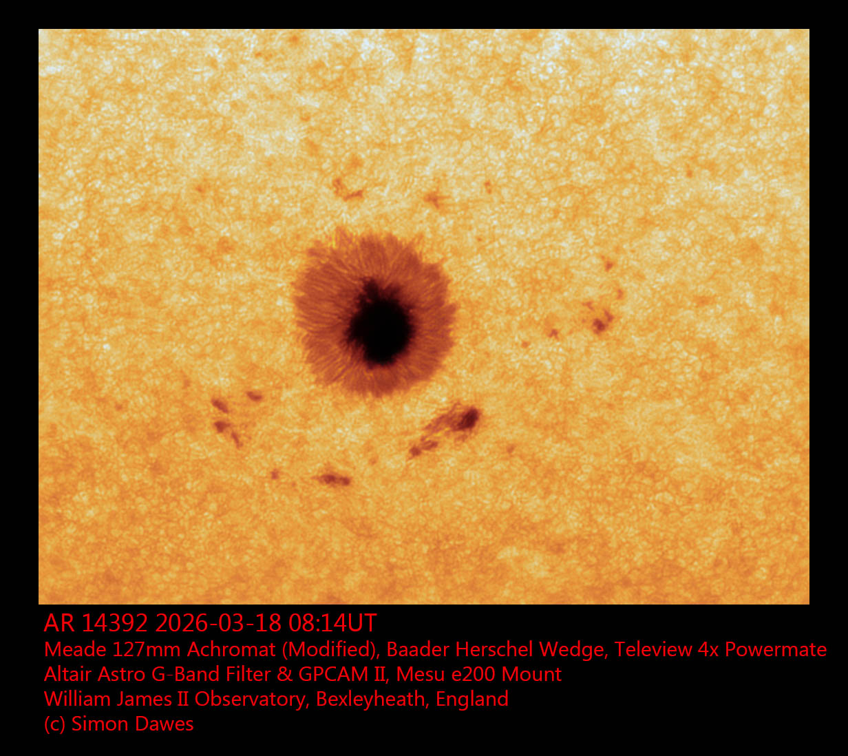 Observation by Simon Dawes: SFD AR14392 2026-03-18 0814UT