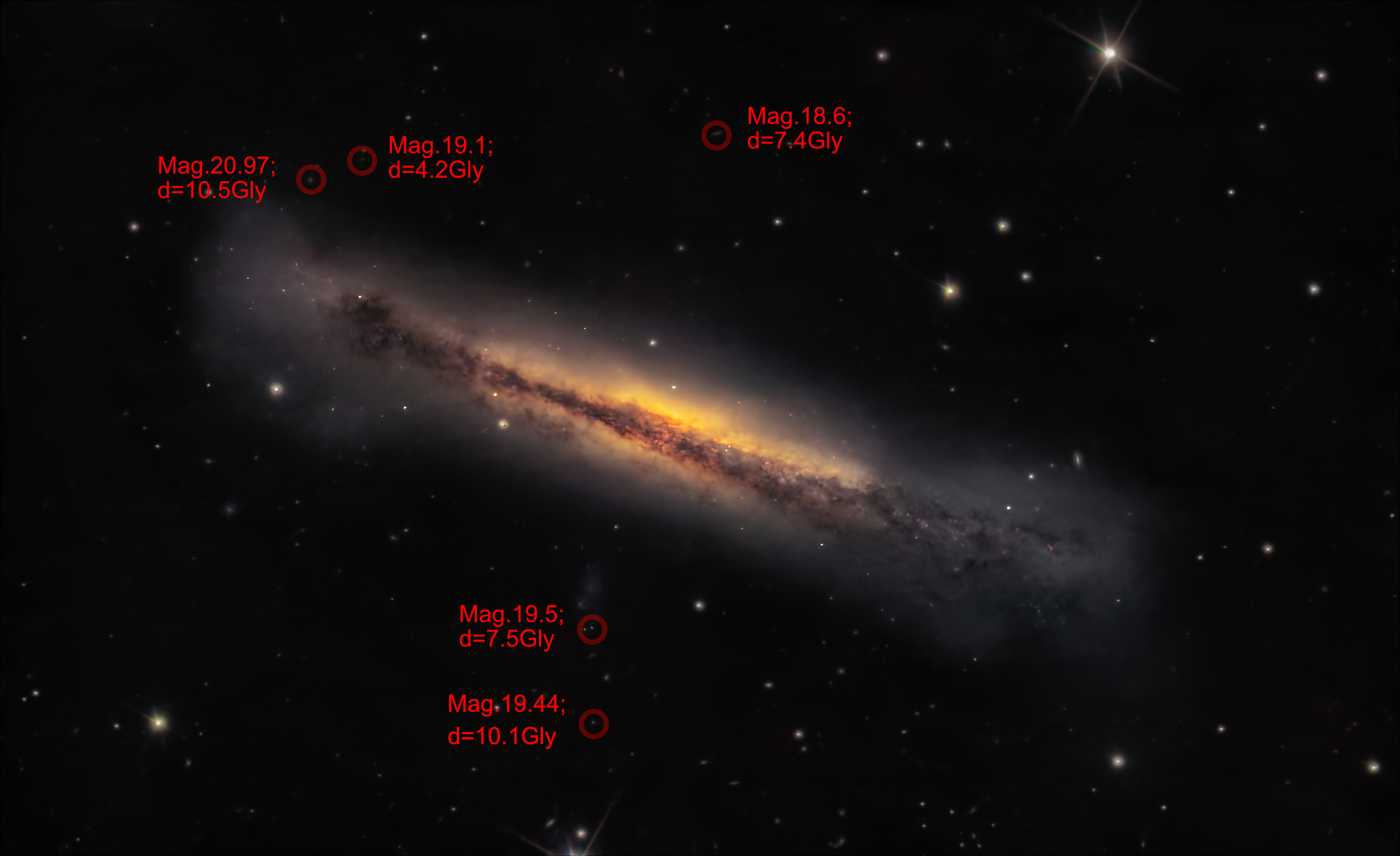 Observation by Mike Greenhill-Hooper: Hamburger galaxy with annotation