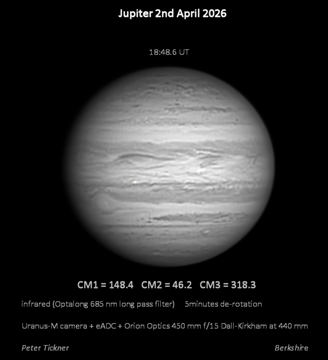 Observation by Peter Tickner: Jupiter and Io 2nd April - IR