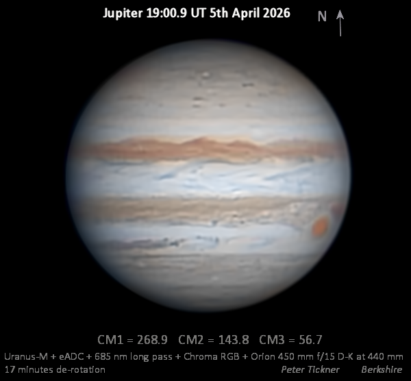Observation by Peter Tickner: Jupiter 5th April -RGB and IR