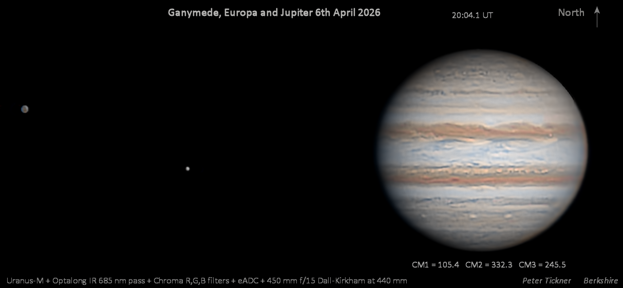 Observation by Peter Tickner: Ganymede, Europa and Jupiter