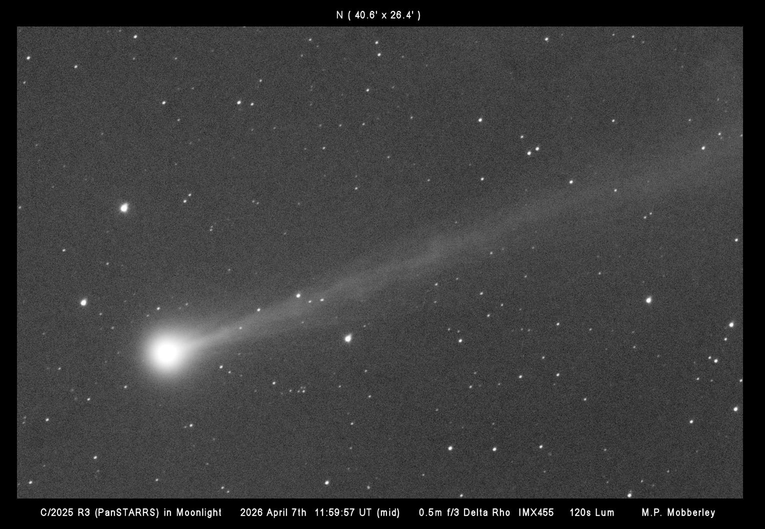Observation by Martin Mobberley: 2025 R3 PanSTARRS on April 7th in Moonli...