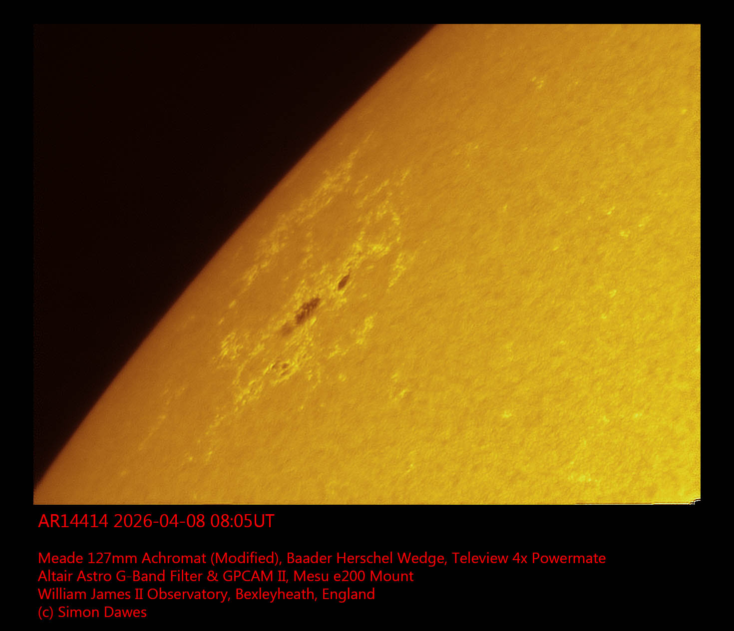 Observation by Simon Dawes: AR14414 2026-04-08 0805UT