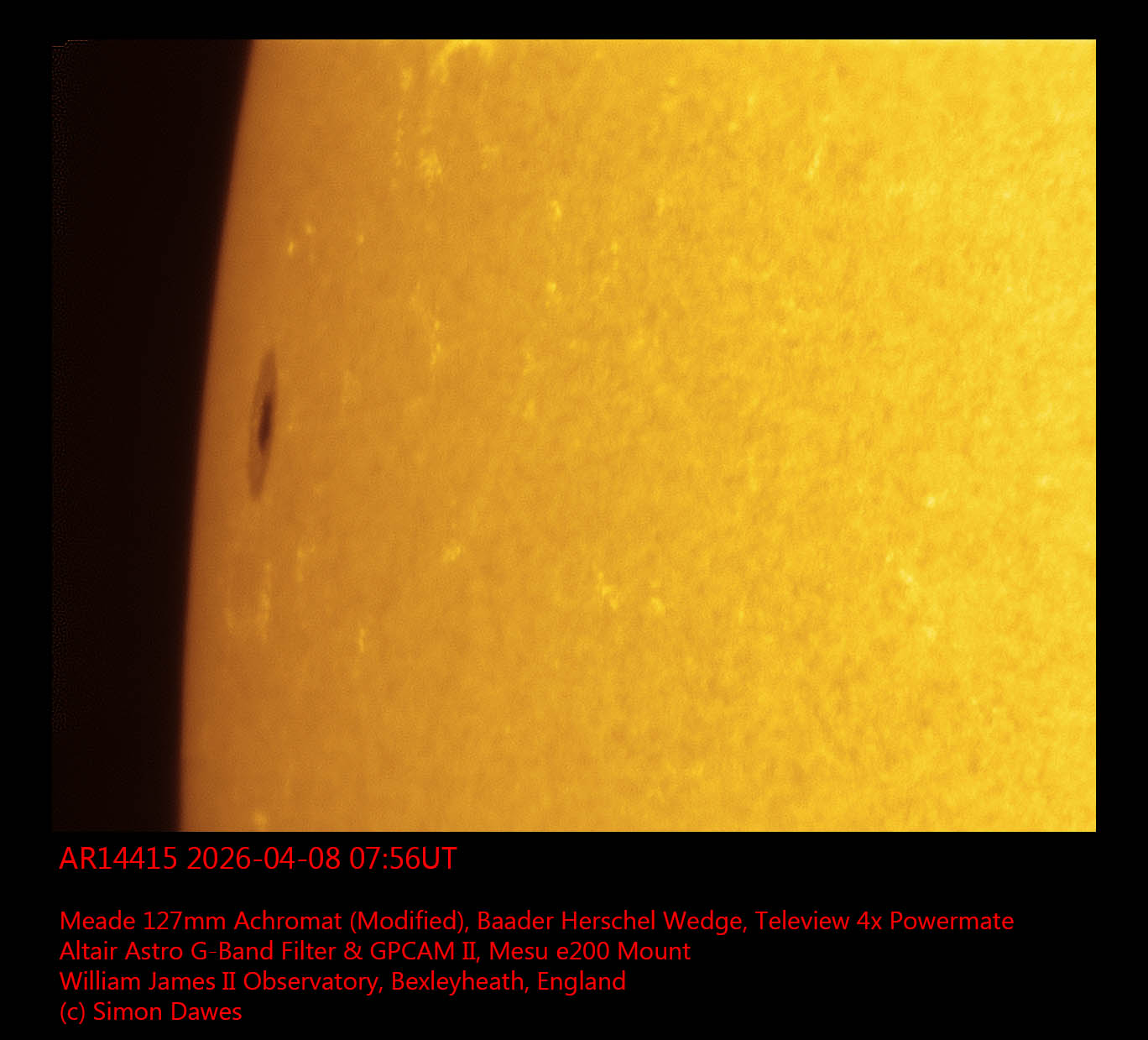 Observation by Simon Dawes: AR14415 2026-04-08 0756UT