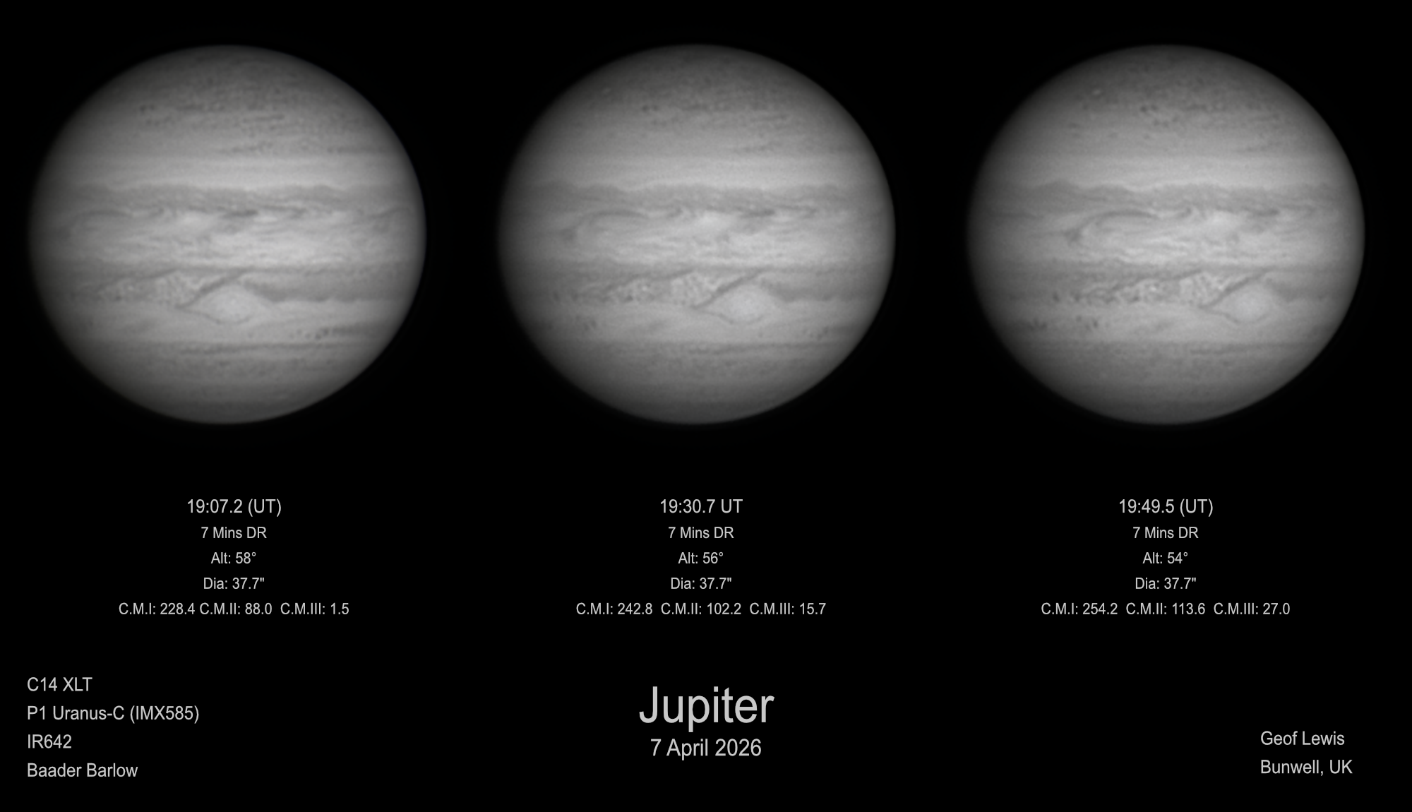 Observation by Geof Lewis: Jupiter IR(x3) - 7 April 2026