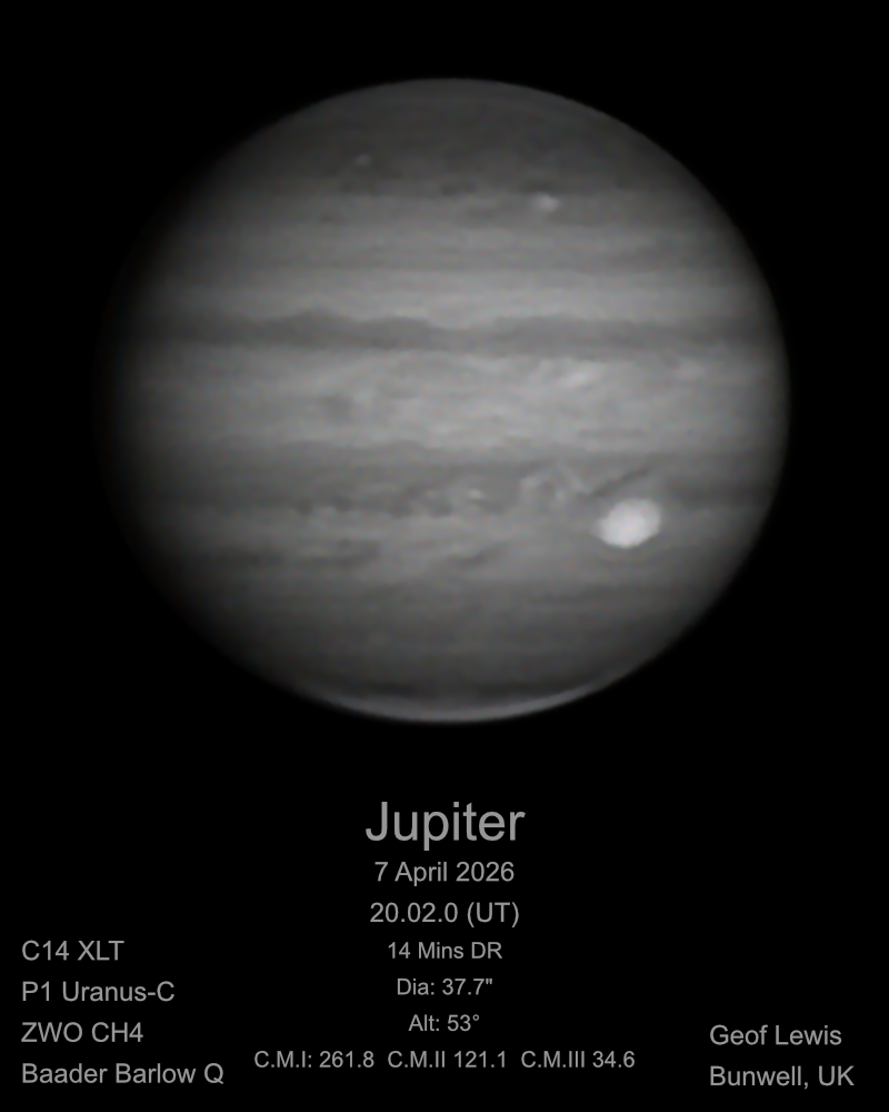 Observation by Geof Lewis: Jupiter (CH4 - methane band) - 7 April 2...