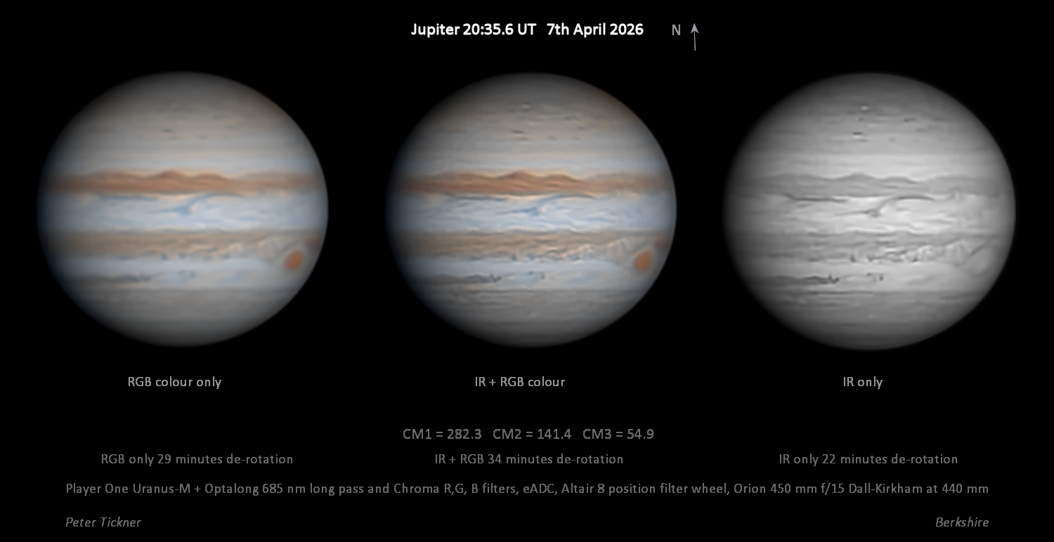 Observation by Peter Tickner: Jupiter 7th April 3 ways