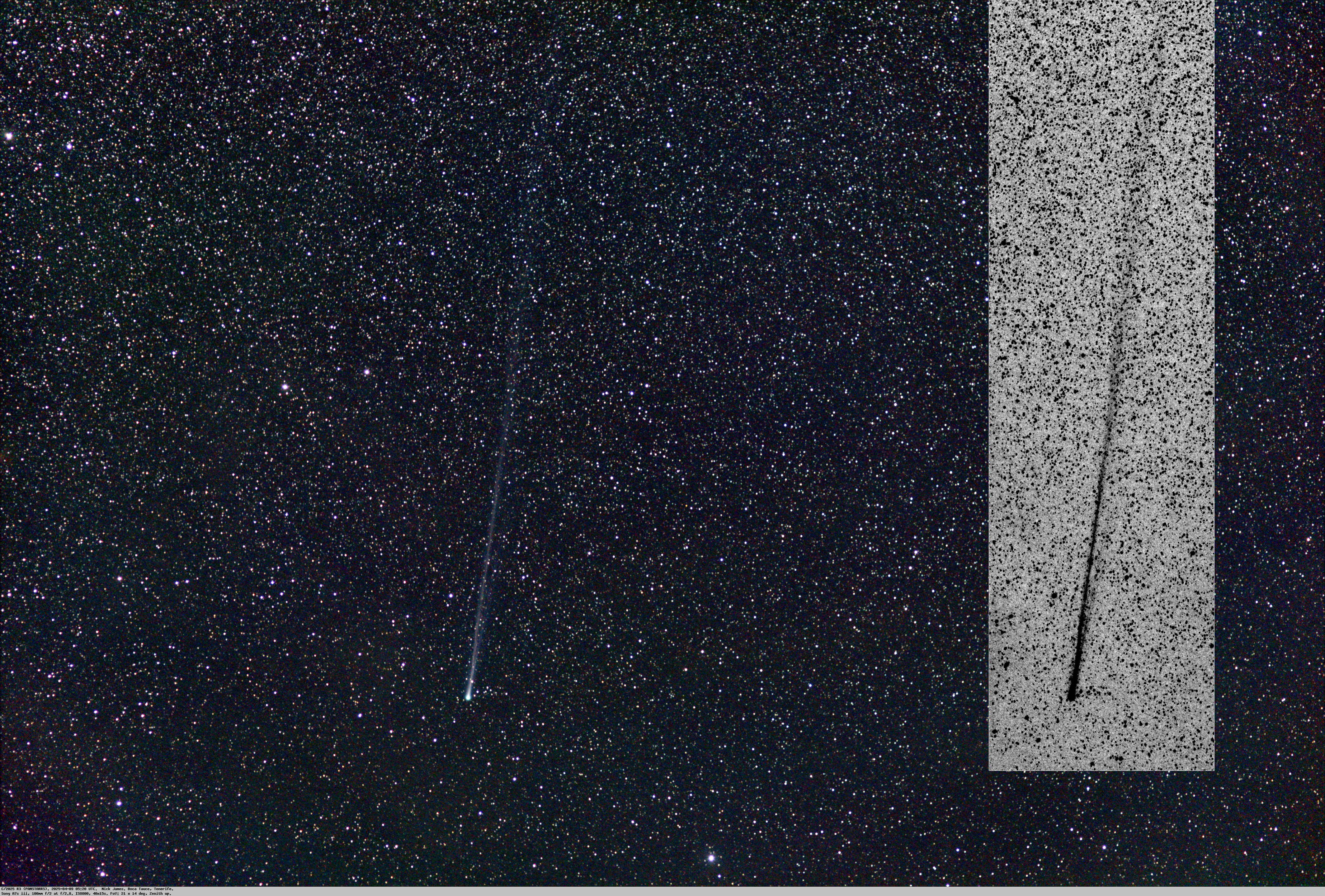 Observation by Nick James: C/2025 R2 (PANSTARRS) 10 degree tail