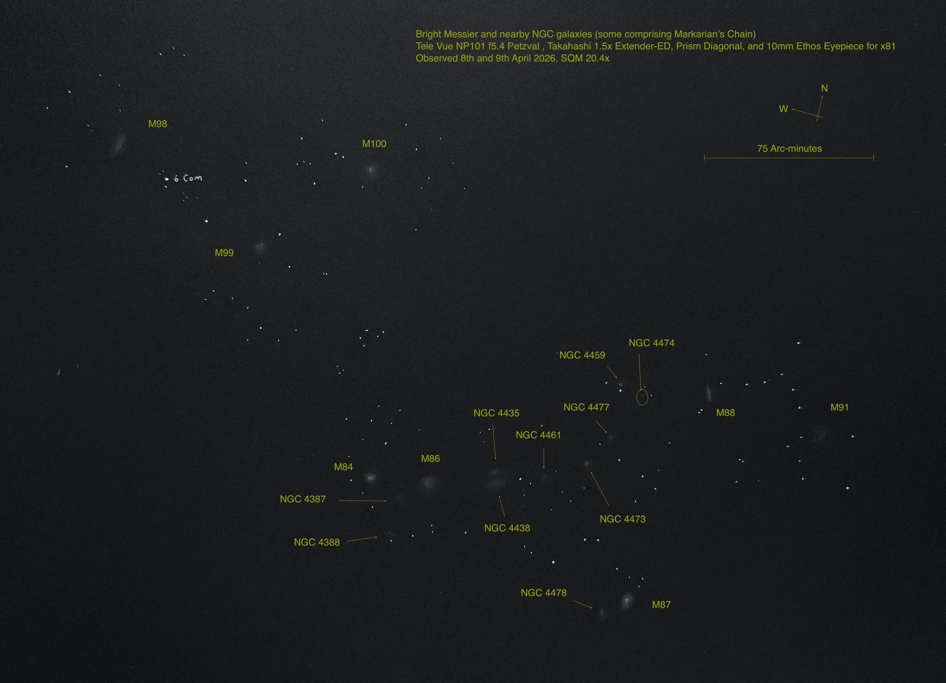 Observation by Joe Andrews: Bright Messier in and around Markarian...