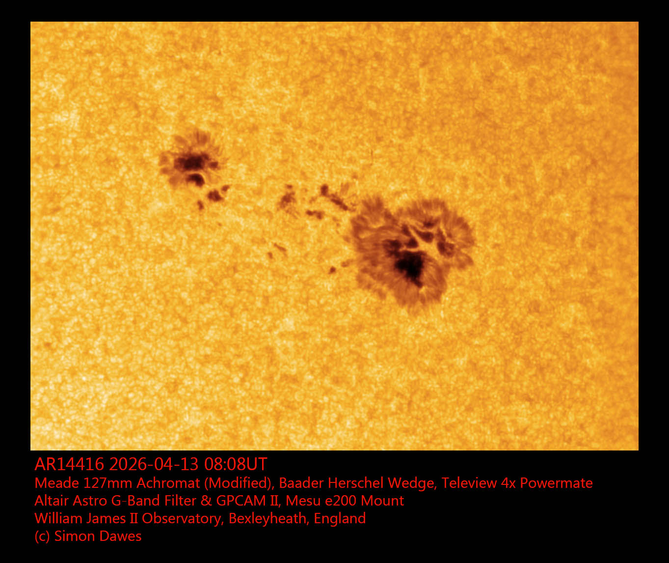 Observation by Simon Dawes: AR14416 2026-04-13 0807UT