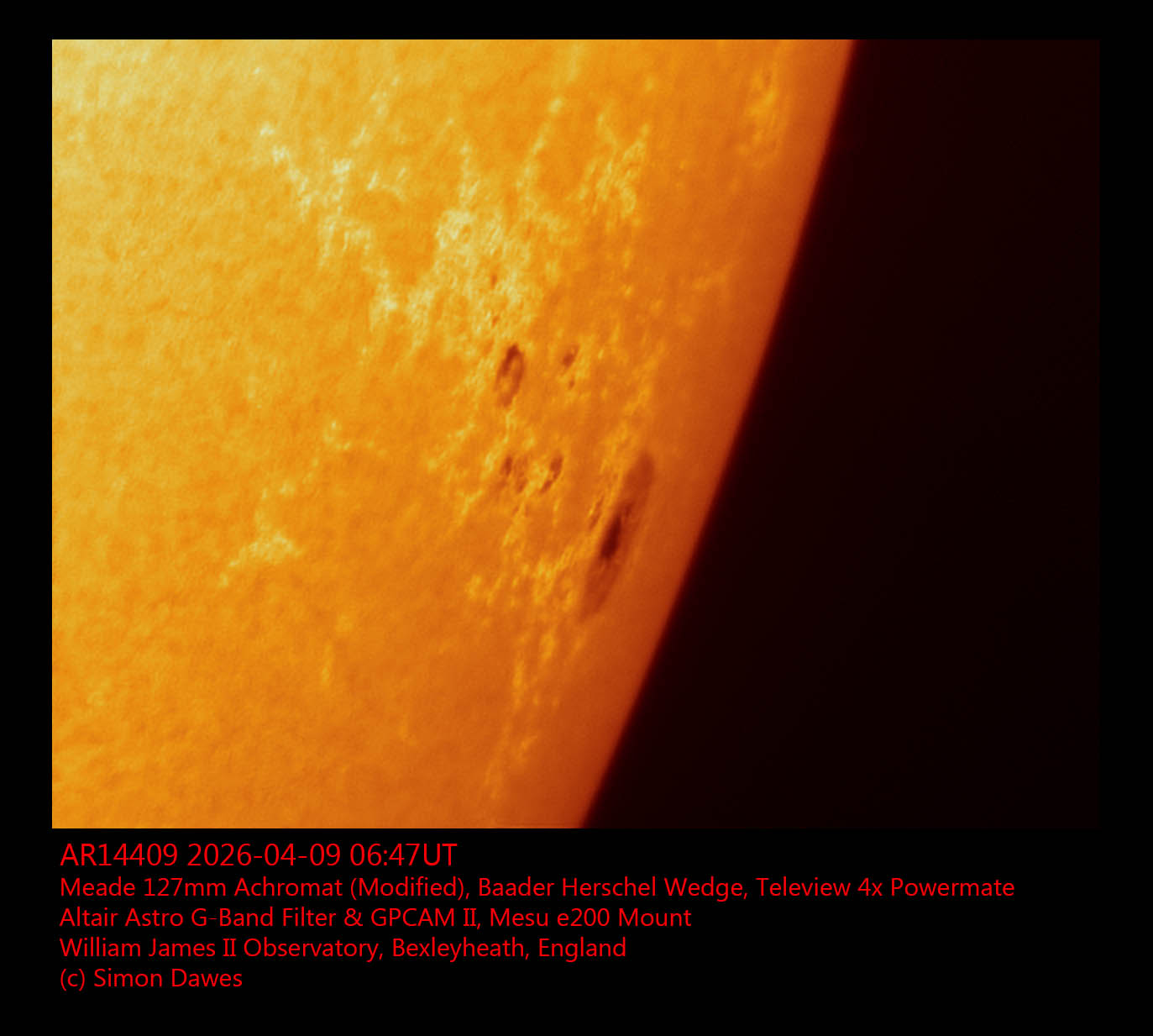 Observation by Simon Dawes: SFD AR14409 2026-04-09 0647UT