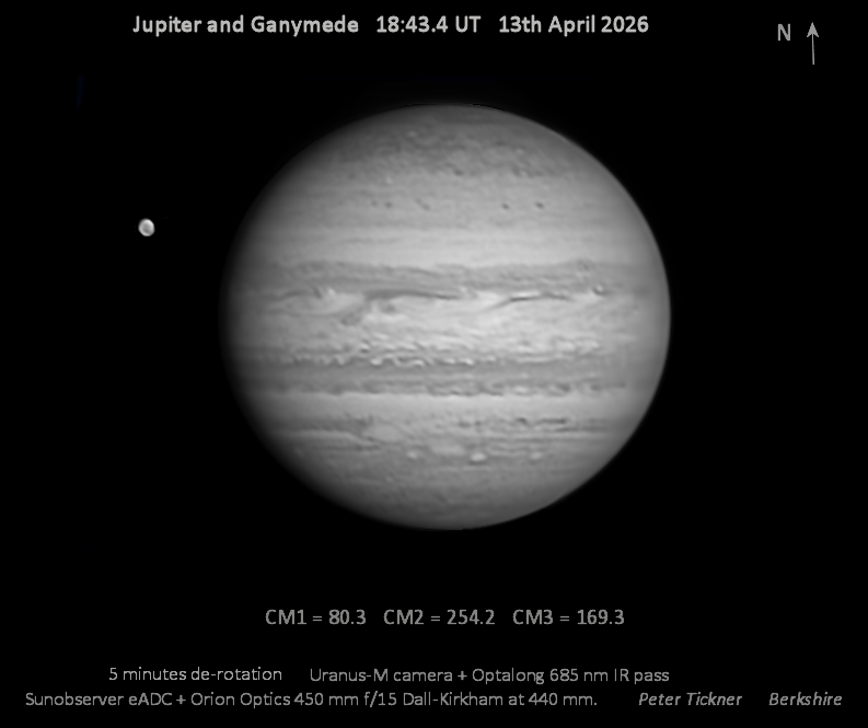 Observation by Peter Tickner: Jupiter and Ganymede IR 13th April