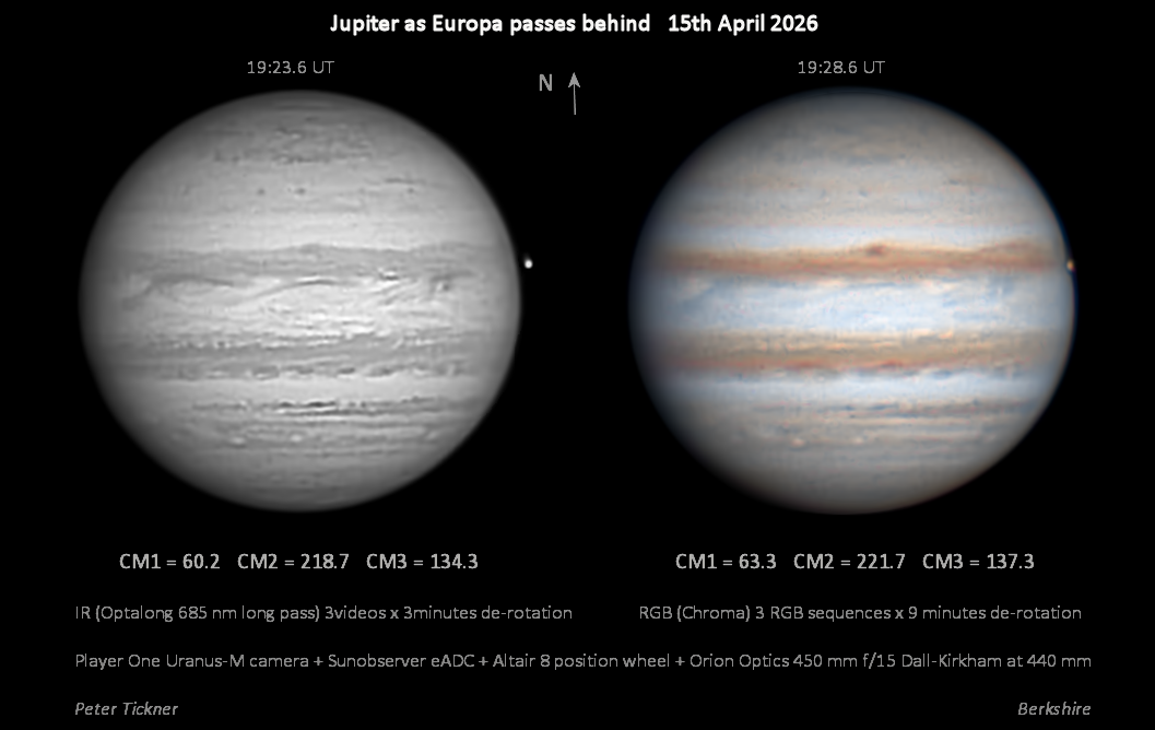 Observation by Peter Tickner: Jupiter and Europa 15th April