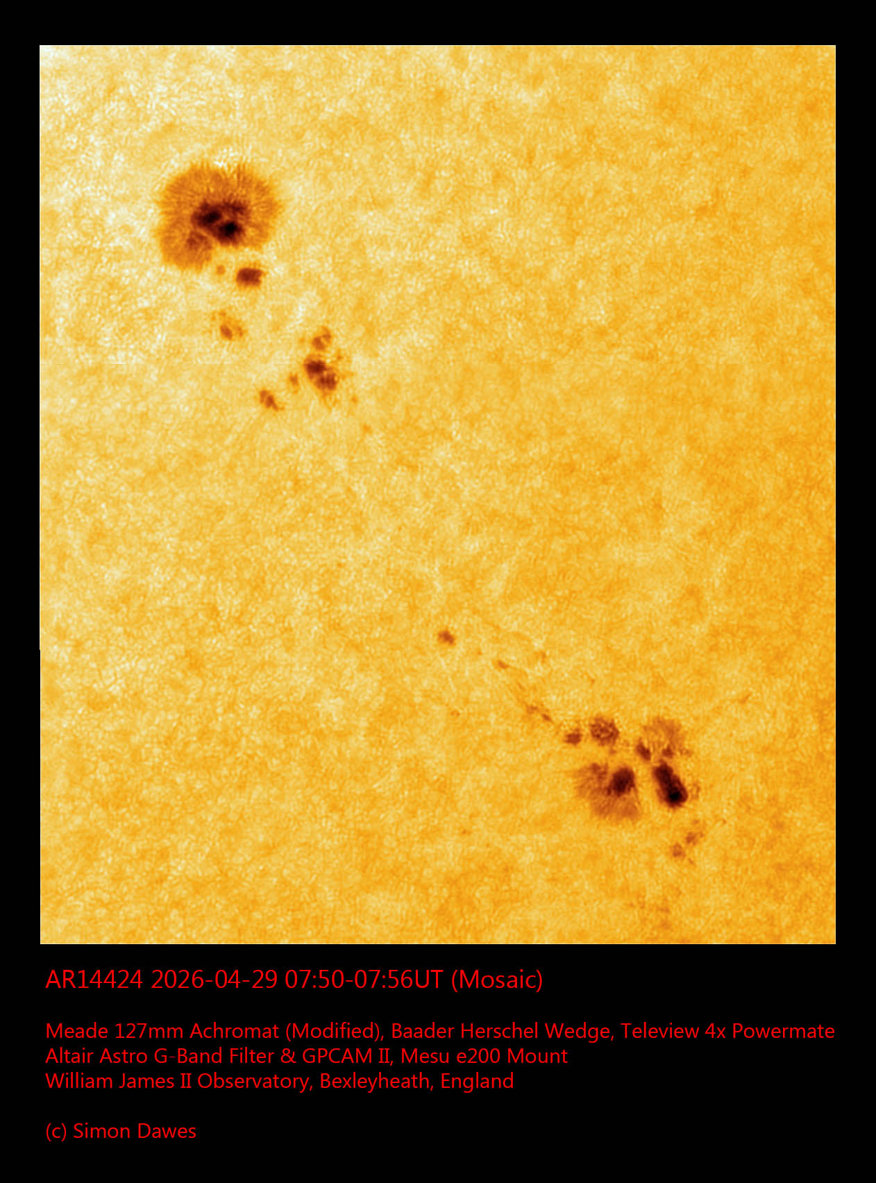Observation by Simon Dawes: AR14424 2026-04-29 0750UT-0756UT