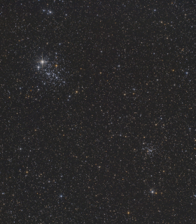 | Equipment: | Nikon D810A (FX), SW coma corrector, SW 200PDS, SW HEQ5 Pro, intervalometer | | Exposure: | (91 x 30 sec) at ISO 1600 | | Location: | North Ayrshire | | Observer: | Iain Cartwright | | Target name: | Open Cluster NGC 457 & NGC 436 |