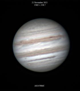 | Equipment: | Hyperbolic Newton HNT-AL (150 mm, f 2.8, 420 mm focal length, Sharpstar), ASI585MM (ZWO), CMOS Cooled Monochrome Camera , AM5N Mount (ZWO), SDSS Filter Set (Baader) , SIRIL 1.4.0 and SDSS Catalog (DR 18) | | Exposure: | 60 s, 1.44 arcsec/px | | Location: | New Jersey, USA | | Observer: | Andres Kriete | | Target name: | 3I/ATLAS (C/2025 N1) |
