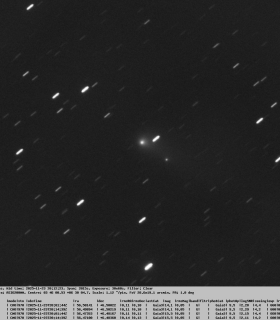 | Equipment: | ASI6200MM + Celestron HD11 | | Exposure: | 30x60s | | Location: | Chelmsford | | Observer: | Nick James | | Target name: | 240P/NEAT |