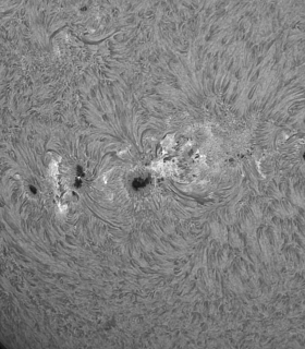 | Equipment: | Lunt Ls50THa with eyepiece projection and ASI178MM camera | | Exposure: | exp. time 1.1 msec, image is a stack of best 250 from 10,000-frame video | | Location: | Suburban North Leeds | | Observer: | John Arnold | | Target name: | ARs 4294, 4296, 4298, 4300, 4299, 4295 |