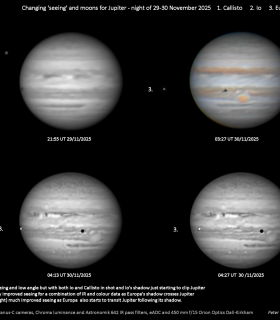 Jupiter and three moons 29-30 November |
