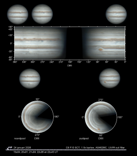 | Equipment: | C8 F10 SCT, 1.5x barlow, UV/IR cut filter, ASI462MC | | Location: | Brugge, Belgium | | Observer: | Alexander Vandenbohede | | Target name: | Jupiter |