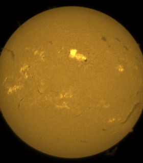 | Equipment: | Acuter Phoenix 40 telescope. Altair 678MM camera | | Exposure: | 1.2ms | | Location: | Wells Somerset UK | | Observer: | Hugh Allen | | Target name: | The Sun |