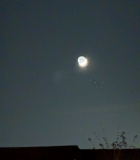 | Equipment: | iPhone 16 Pro | | Exposure: | 3.2s f/2.8 ISO 6400 | | Location: | Hill Head, Hampshire | | Observer: | Andrew Paterson | | Target name: | Moon and Pleiades |