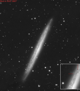 | Equipment: | RC10, L-Pro filter | | Exposure: | 24 x 120s | | Location: | Salcombe Regis, East Devon | | Observer: | David Strange | | Target name: | NGC 5907 |