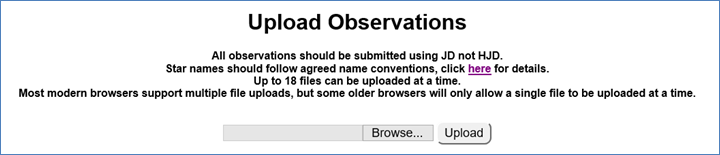 Note that observers can only upload their own observations, while BAA Officers are able to upload anyone’s observations.