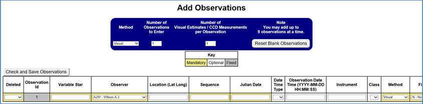 · Note that this is a web form and until you press “Check and Save Observations” your observations are not stored anywhere.