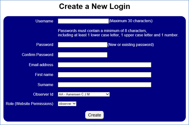 · Before setting up a new user you must first create an observer id for them using the Standing Data then Observers webpage.
