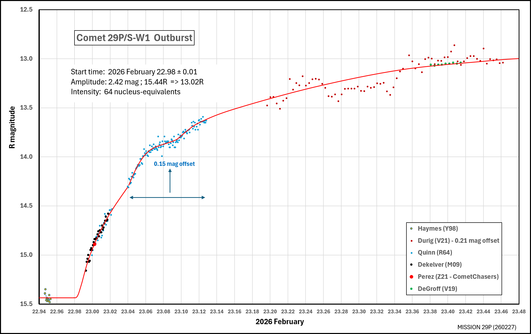 2026 February 23: 29P caught in the act thanks to SIX observers