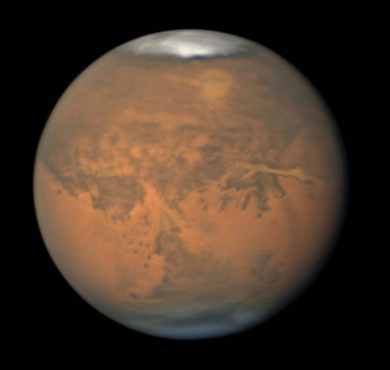 The useful WinJUPOS software can generate library images of the albedo features at the time of observation, calculate the altitude of the planet, or show the positions of the little martian moons, Phobos and Deimos (which may be successfully imaged with around 200 mm aperture and upwards).
