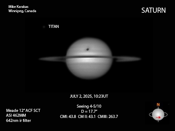 Once again, Greg Shanos was able to observe another transit of Titan’s shadow from 07:41 until 10:07 UT.