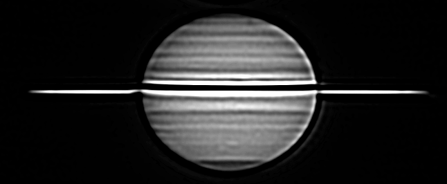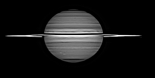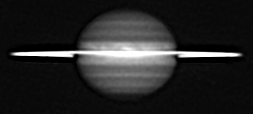The rings were not visible in images with exposures specifically for the planet. However high contrast enhanced images taken by both observers revealed the very faint south face of the rings (see below).