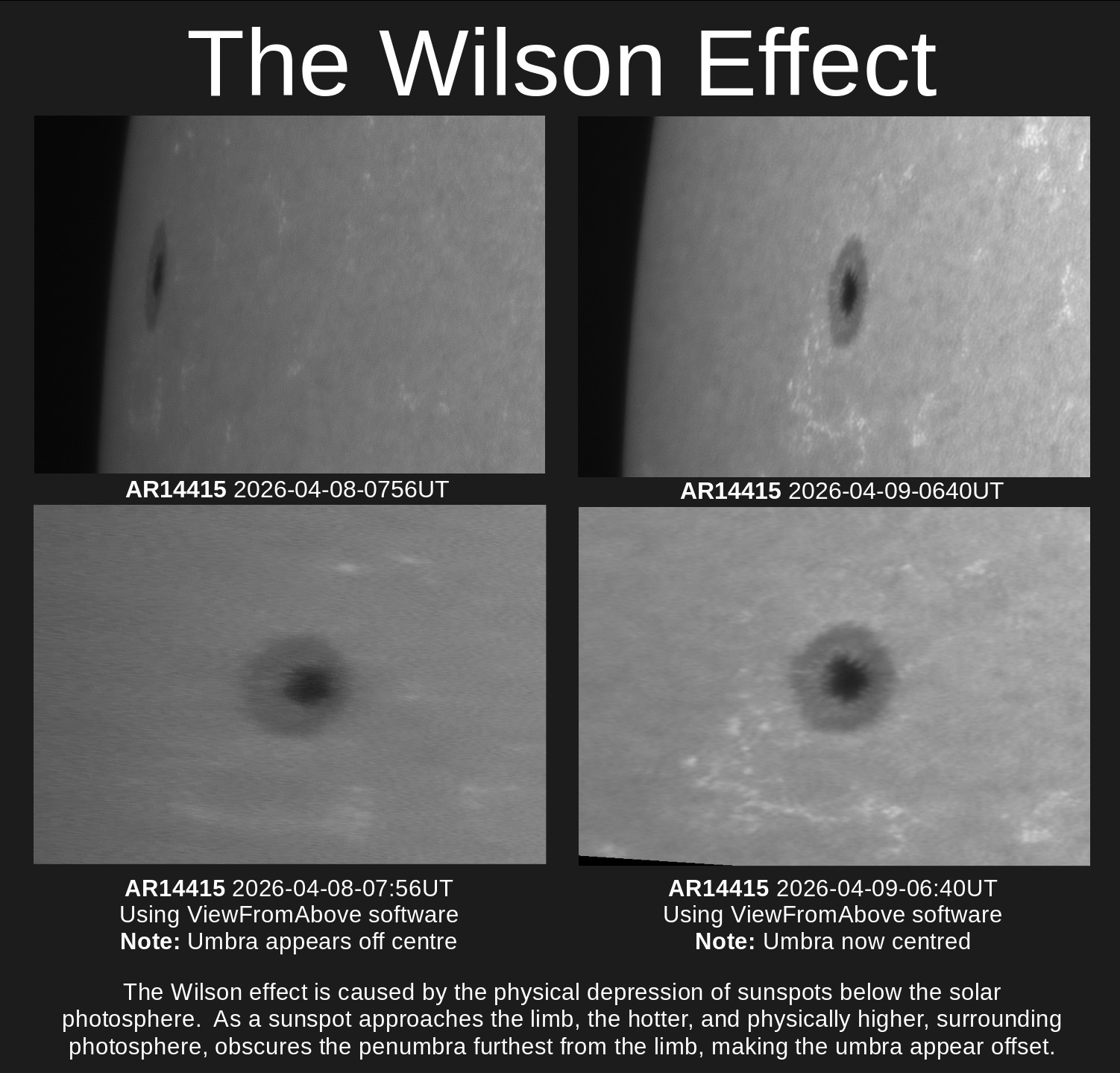 - Monitoring the changing appearance of sunspots showing the Wilson Effect as they move away or towards the limb.